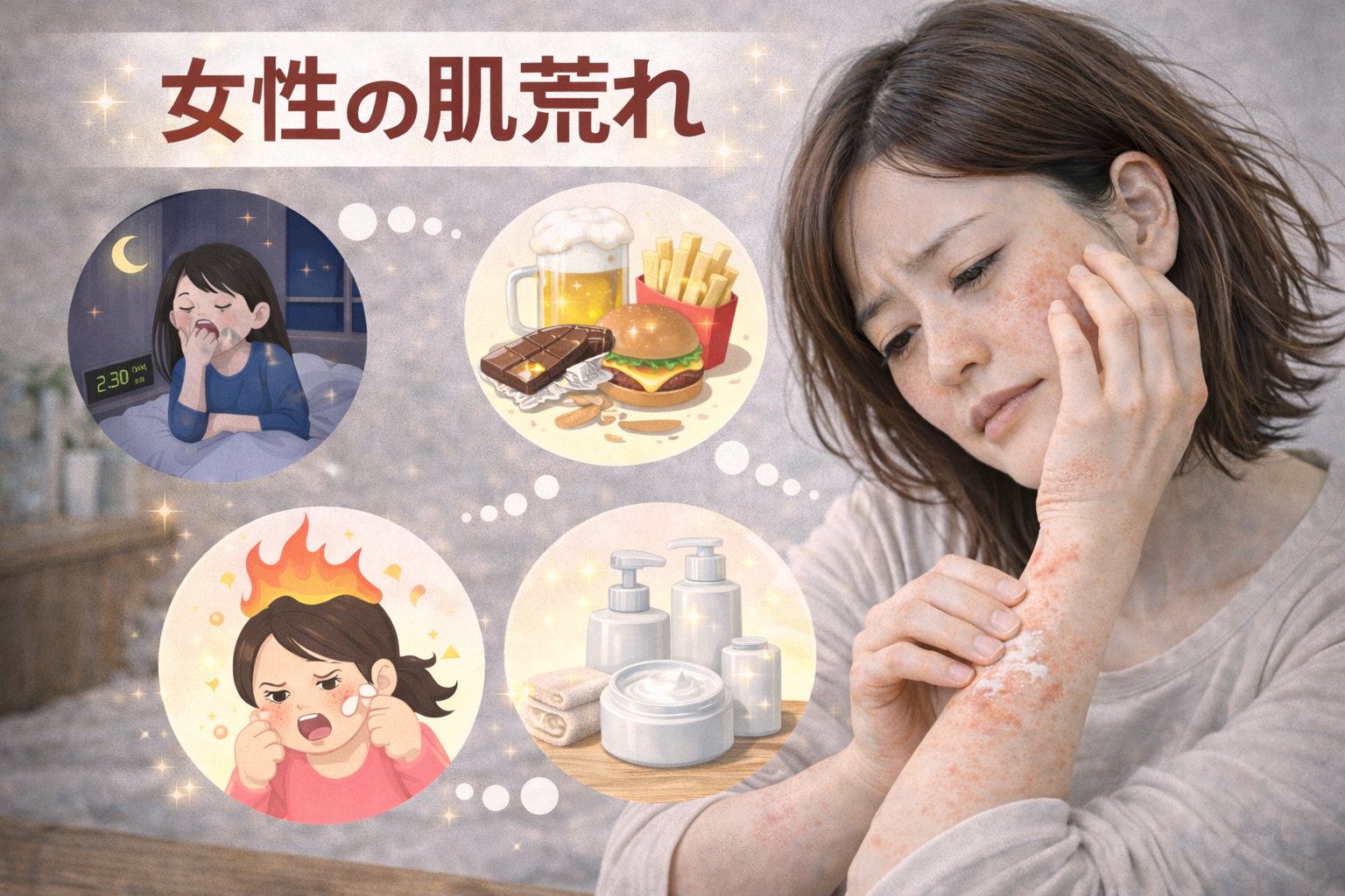この記事では、ホルモンバランスと肌荒れの関係について解説します。