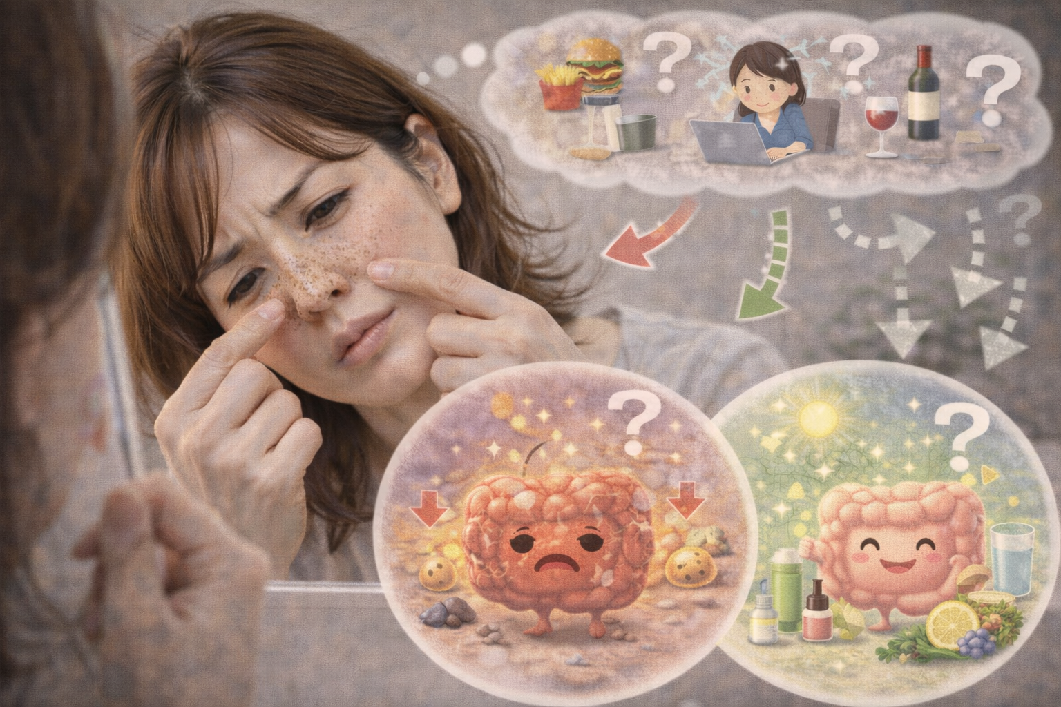 毛穴の黒ずみが繰り返されるのは、皮脂分泌・角質の乱れ・生活習慣など複数の要因が関係していると考えられています。