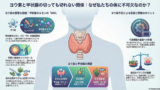 本記事では、甲状腺ホルモンの構造やヨウ素の役割、そして食事からの摂取について、公的なデータや専門的な知見(NIH、WHO等)に基づいて詳しく解説します。